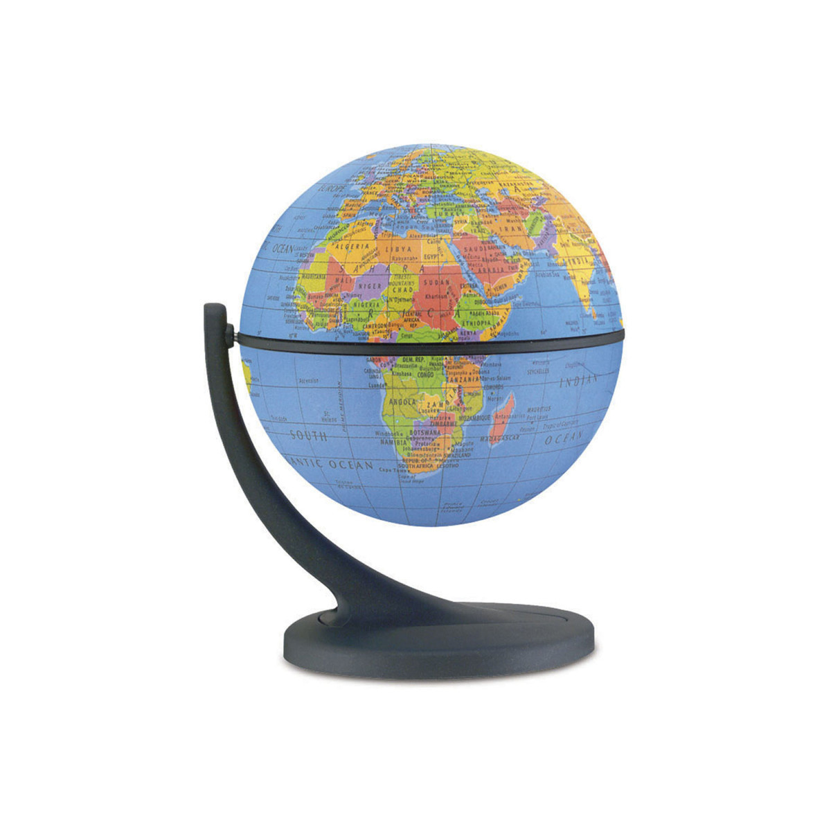 Desktop globe features a 4.3" blue ocean globe with political map