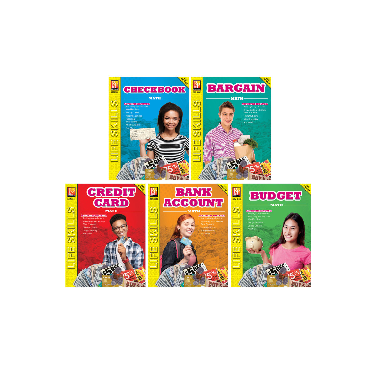 Students will gain hands-on experience practicing the math they will use in the real world. The realistic activities in this series will teach students about paying bills, keeping a transaction register, filling out a credit card application, shopping online, using a debit card, making and keeping to a budget, shopping for the best buy, and so much more!