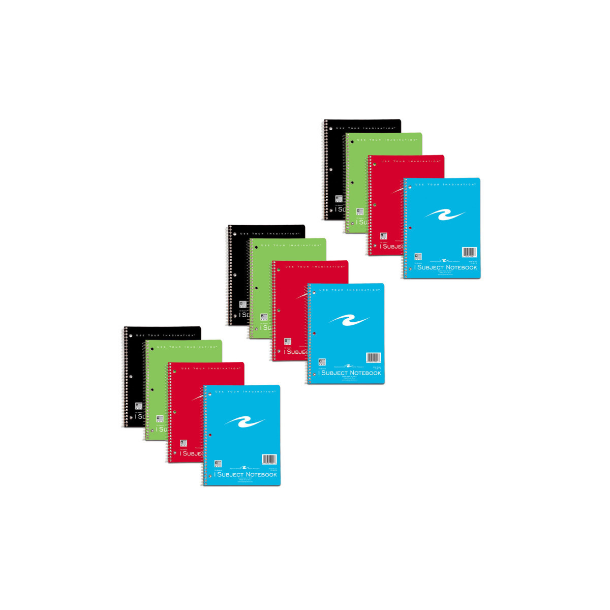 One subject wirebound notebook. Smooth, white, 15lb writing paper is wide ruled with a red margin line. Covers are printed on a bright board, and sold in 4 assorted colors (no color choice). Wire ends are coil-locked for snag-proof performance. Each book is 10.5" x 8" and contains 70 sheets of writing paper. Proudly made in the USA. Sold as a pack of 12 notebooks.