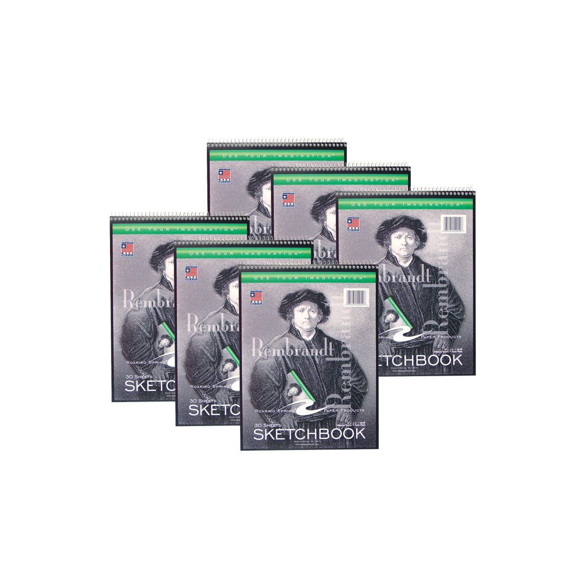 This 9" x 12" Sketchbook contains 30 sheets of acid free white 60# drawing paper. The top spiral binding ensures that the wire won't get in the way - it's perfect for both left and right handed artists. Acid free paper ensures that your art will be preserved for years to come. This Sketchbook is a great choice for artists of all ages! Sold as a pack of 6 sketchbooks.