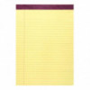 Canary paper legal pad. Smooth, white, 15lb writing paper has legal ruled blue lines and double red margin lines. Sheets are micro-perforated for EZ removal. 34 pt chipboard backs add stability. Stapled and taped construction. Full sheet size is 8.5" x 11.75", and tear-out size is 8.5" x 11". 50 sheets per pad. Proudly made in USA!