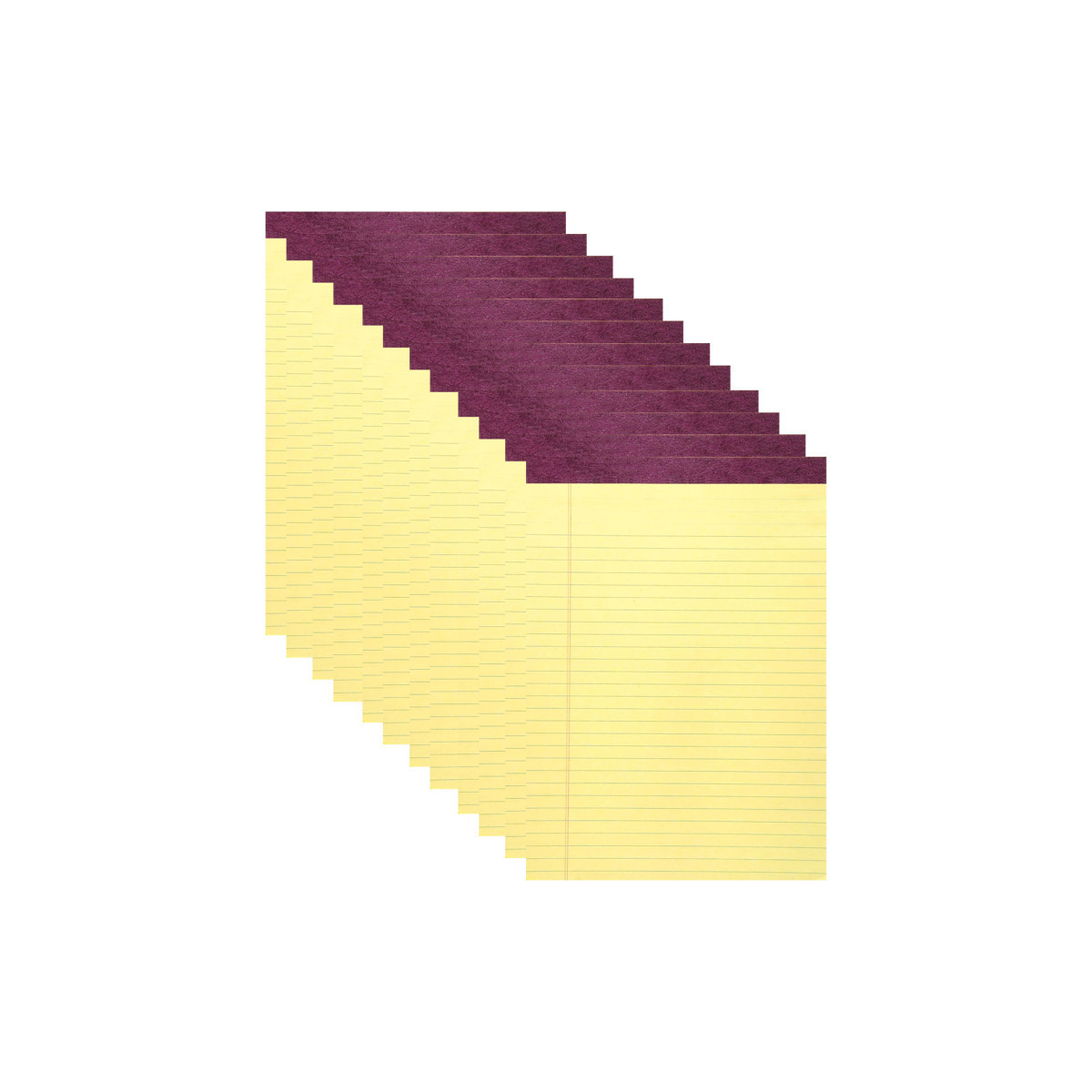 Canary paper legal pad. Smooth, white, 15lb writing paper has legal ruled blue lines and double red margin lines. Sheets are micro-perforated for EZ removal. 34 pt chipboard backs add stability. Stapled and taped construction. Full sheet size is 8.5" x 11.75", and tear-out size is 8.5" x 11". 50 sheets per pad. Proudly made in USA! Sold as a pack of 12 pads.