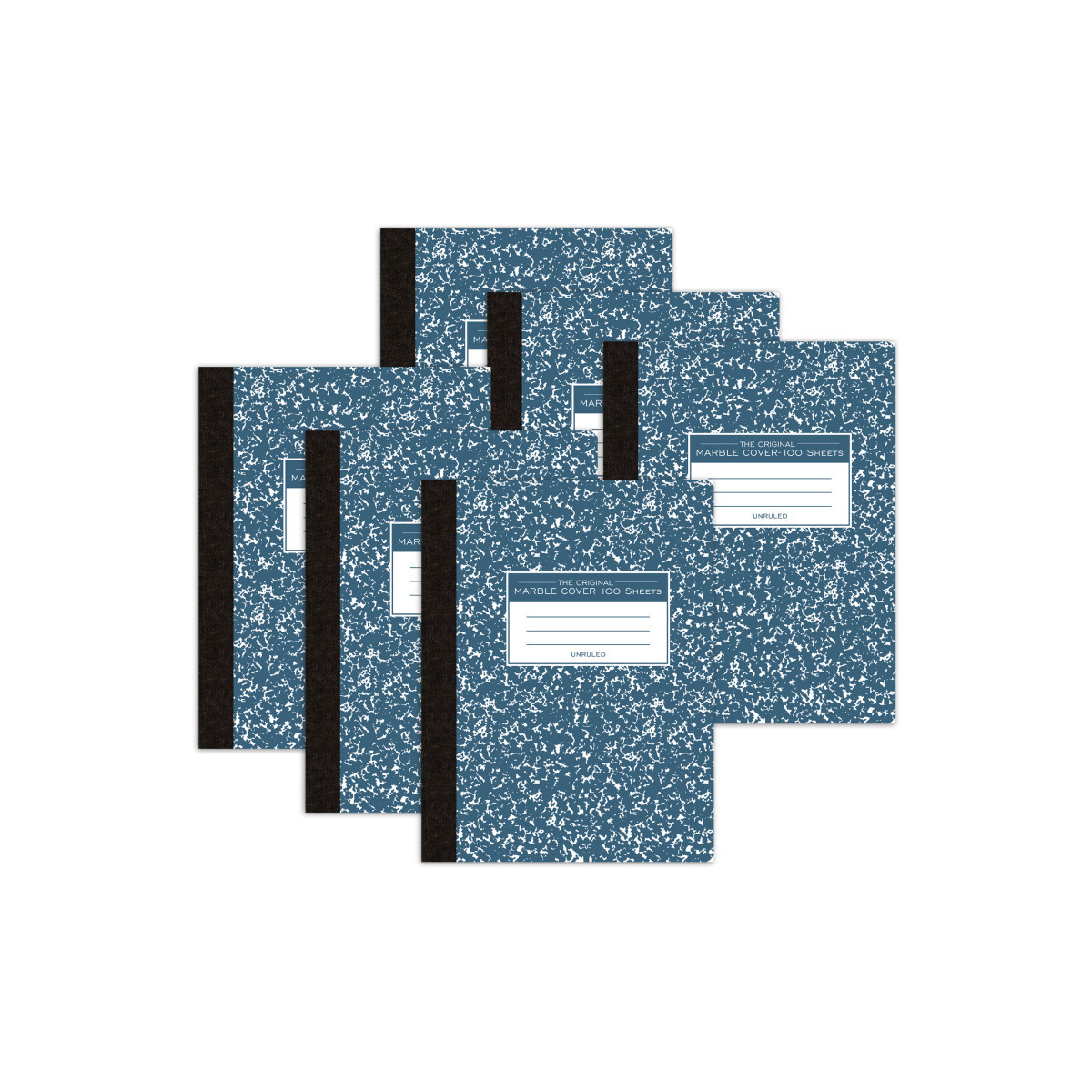 Record your notes in this permanently bound composition book. Paper is smooth 15# writing paper that is plain-no ruled lines of any kind. Great for sketches! Covers are a hard white board that are printed in the traditional blue marble pattern. Inside of covers is printed with class schedule and other useful information. Each book is produced with center-sewn and tape bound construction, not designed for sheet tear-out. Sheet size is 9.75" x 7.5" and there are 100 sheets per book. Proudly made in USA! Sold as a pack of 6 composition books.
