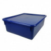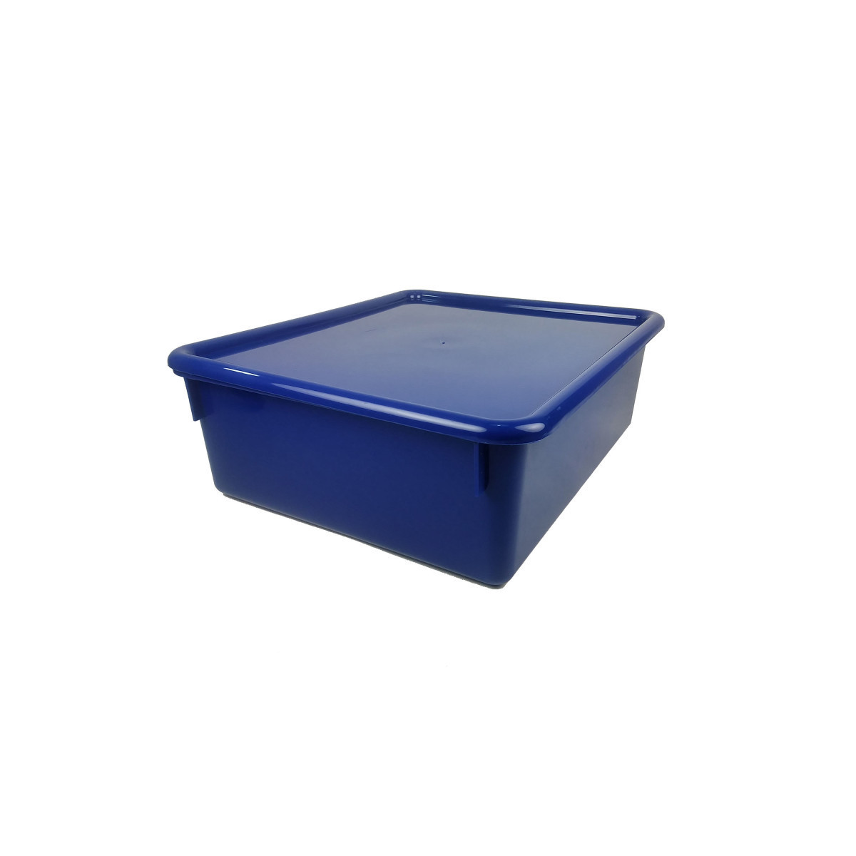 Stow things away with set on lids and stack them high. This tub holds plenty of what you need to store. Great for school or home organization. Made of non-toxic sturdy plastic. Includes lid. Measures 16" x 13-1/2" x 5-1/2".
