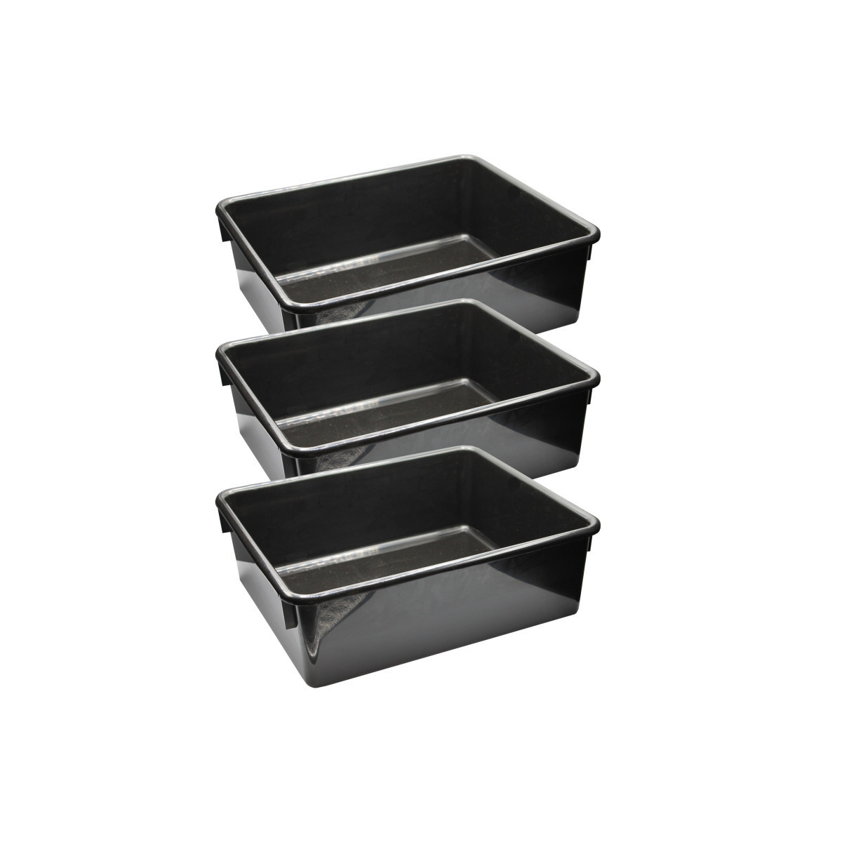 This tray holds plenty of what you need to store. Great for school or home organization. Made of non-toxic sturdy plastic. Lid not included. Measures 16" x 13-1/2" x 5-1/2". Sold as a pack of 3 trays.