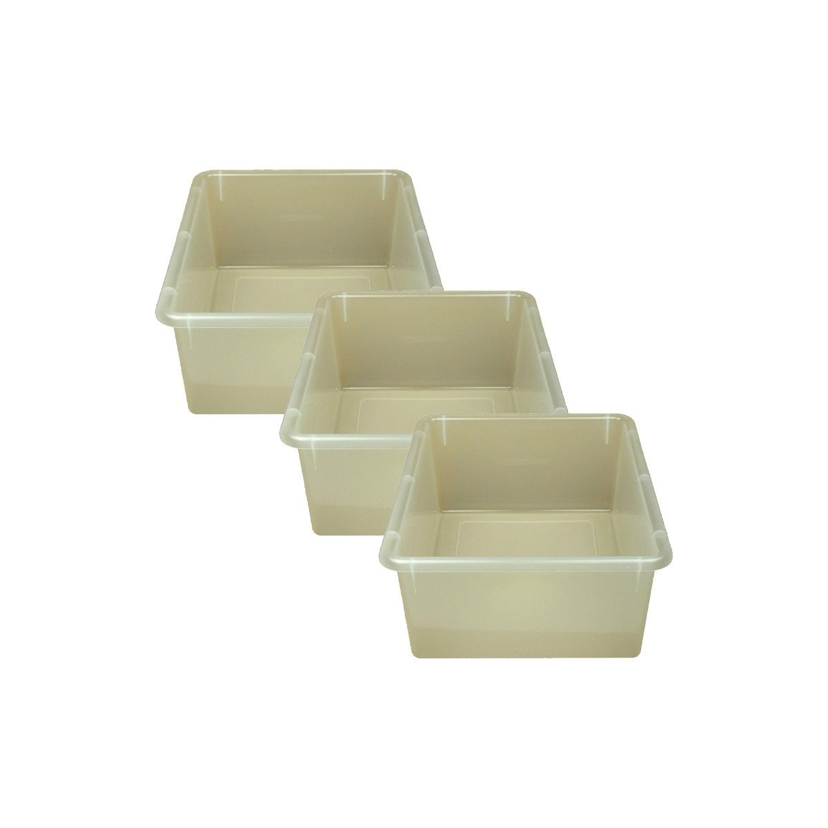 This tray holds plenty of what you need to store. Great for school or home organization. Made of non-toxic sturdy plastic. Lid not included. Measures 16" x 13-1/2" x 5-1/2". Sold as a pack of 3 trays.