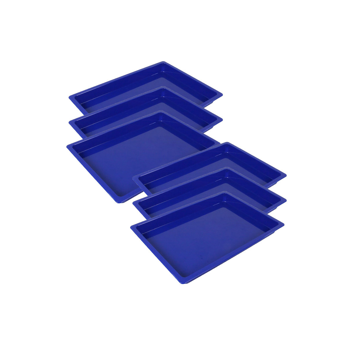 This arts and crafts tray, made of a sturdy plastic, can be used for painting, dough play, crafting, puzzles and more. Great for arts and crafts projects. Measures 11-1/2" x 8-1/4" x 1". Sold as a pack of 6 trays.