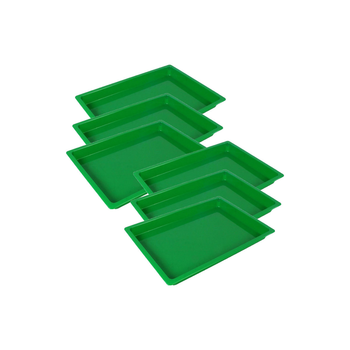 This arts and crafts tray, made of a sturdy plastic, can be used for painting, dough play, crafting, puzzles and more. Great for arts and crafts projects. Measures 11-1/2" x 8-1/4" x 1". Sold as a pack of 6 trays.