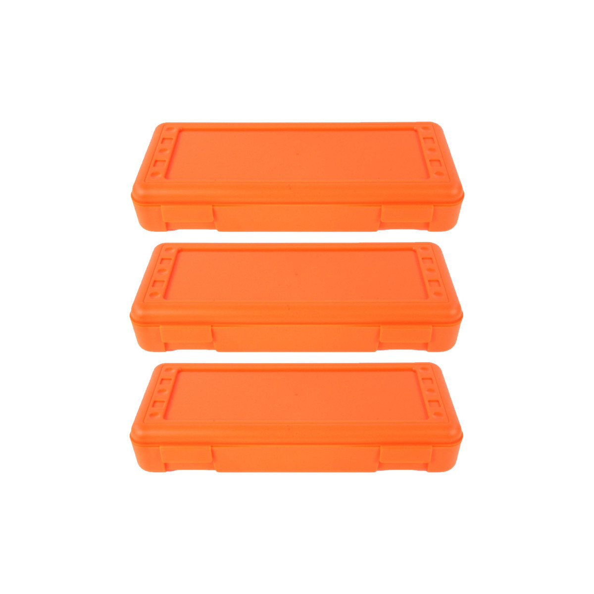 The perfect storage solution for rulers, pens, pencils, markers, notions, embellishments, etc. Take it along on the road or from classroom to classroom. This is the perfect storage for quilting accessories, cutters, scissors and more. Measures 13-1/2" x 5-1/2" x 2-1/2". Sold as a pack of 3 boxes.