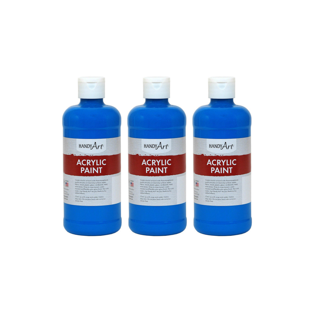 These acrylic paints combine high quality with low cost and are the preferred choice for paint parties! You can explore most any idea or project with this economical spectrum of colors. Use on most any surface: paper, fabric, wood, plastic, glass, cardboard, metal and canvas. Rich and durable colors dry to a permanent, water resistant and flexible semi-gloss finish. Clean up with soap and water. Certified AP Non-Toxic and Gluten-Free. Made in the USA. Each bottle is 16 oz. Sold as a pack of 3 bottles.