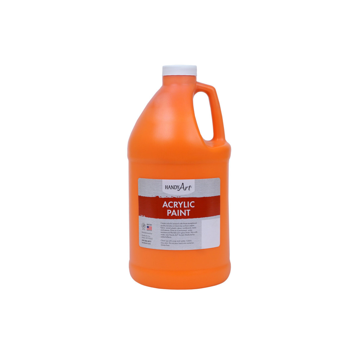 Handy Art® acrylic paints combine high quality with low cost and are the preferred choice for paint parties! You can explore most any idea or project with this economical spectrum of colors. Use on most any surface: paper, fabric, wood, plastic, glass, cardboard, metal and canvas. Rich and durable colors dry to a permanent, water resistant and flexible semi-gloss finish. Clean up with soap and water. Certified AP Non-Toxic and Gluten-Free. Made in the USA. Each bottle is 64 oz.