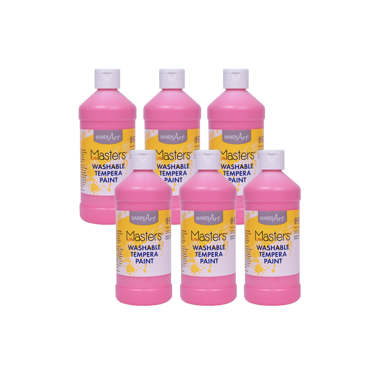 Little Masters® Washables are the budget friendly choice for the young artist! Bright blendable colors, wash out of most fabrics with soap and cold water. Certified AP Non-Toxic. Made in the USA. Each bottle includes 16 oz. of paint. Sold as a pack of 6 bottles.