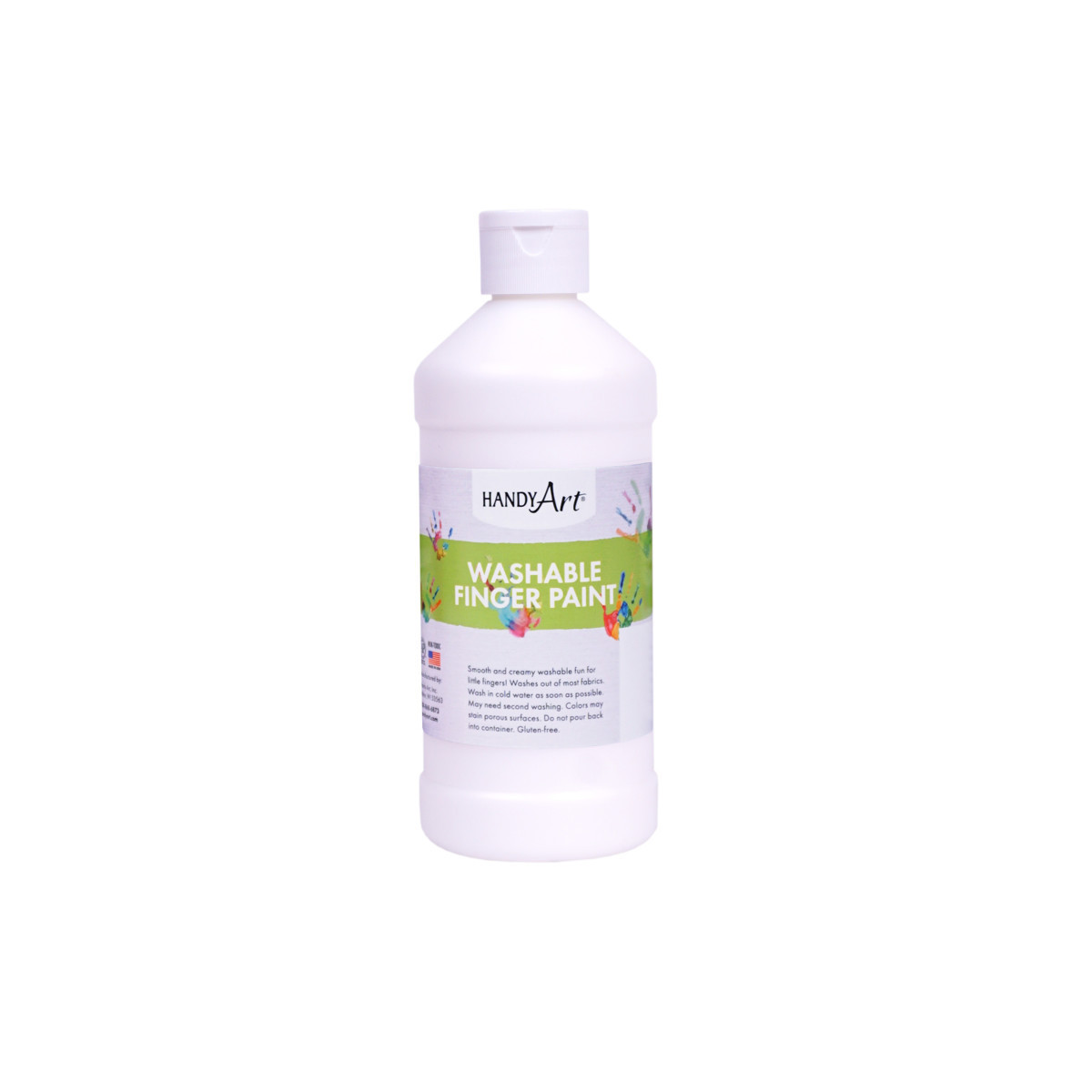 Handy Art® Washable Finger Paint offers vibrant, fast drying color with a smooth and creamy texture. Never have little hands had so much fun and been so clean afterwards! Handy Art® Washable Finger Paints are available in a variety of sizes and colors. Handy Art® Washable Finger Paints are designed to wash out of most clothing with soap and cold water. Handy Art® Washable Finger Paints are certified AP non-toxic. Each bottle is 16 oz.