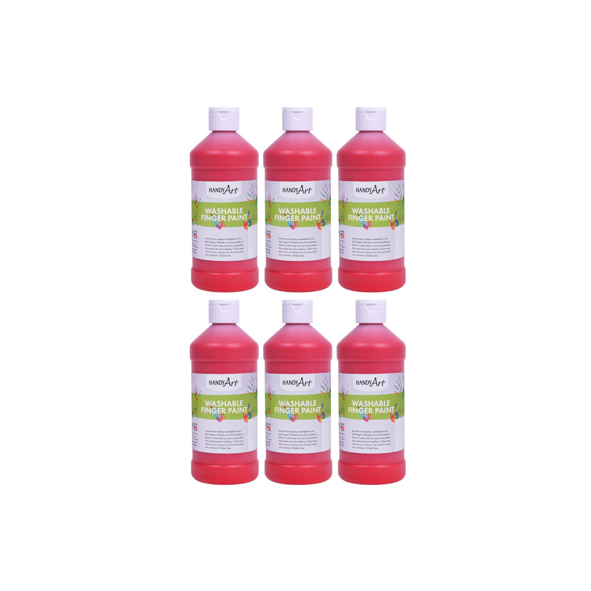 Handy Art® Washable Finger Paint offers vibrant, fast drying color with a smooth and creamy texture. Never have little hands had so much fun and been so clean afterwards! Handy Art® Washable Finger Paints are available in a variety of sizes and colors. Handy Art® Washable Finger Paints are designed to wash out of most clothing with soap and cold water. Handy Art® Washable Finger Paints are certified AP non-toxic. Each bottle is 16 oz. Sold as a pack of 6 bottles.