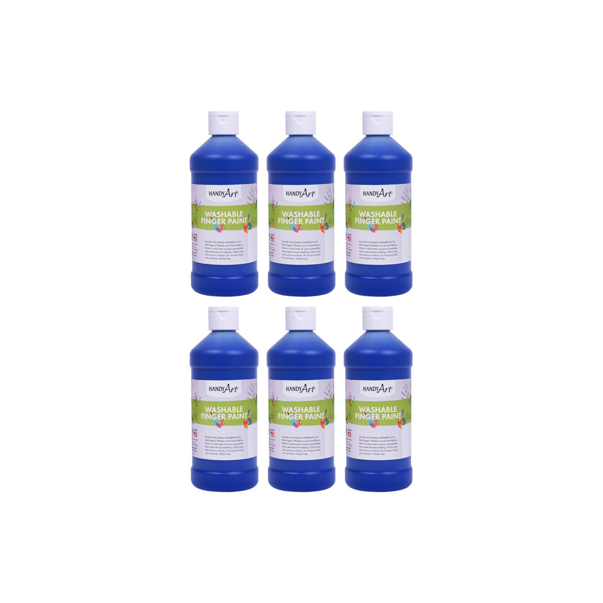 Handy Art® Washable Finger Paint offers vibrant, fast drying color with a smooth and creamy texture. Never have little hands had so much fun and been so clean afterwards! Handy Art® Washable Finger Paints are available in a variety of sizes and colors. Handy Art® Washable Finger Paints are designed to wash out of most clothing with soap and cold water. Handy Art® Washable Finger Paints are certified AP non-toxic. Each bottle is 16 oz. Sold as a pack of 6 bottles.