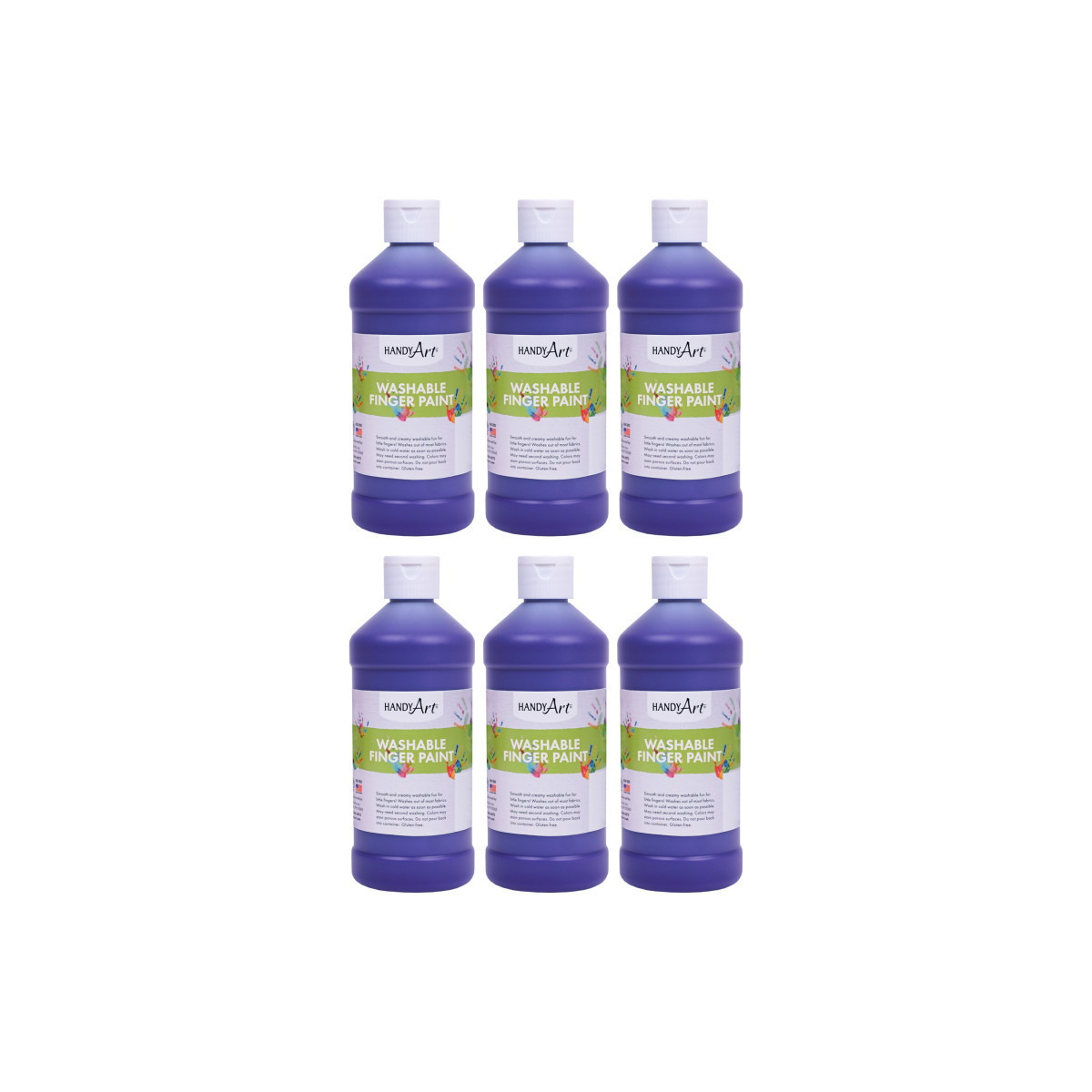 Handy Art® Washable Finger Paint offers vibrant, fast drying color with a smooth and creamy texture. Never have little hands had so much fun and been so clean afterwards! Handy Art® Washable Finger Paints are available in a variety of sizes and colors. Handy Art® Washable Finger Paints are designed to wash out of most clothing with soap and cold water. Handy Art® Washable Finger Paints are certified AP non-toxic. Each bottle is 16 oz. Sold as a pack of 6 bottles.