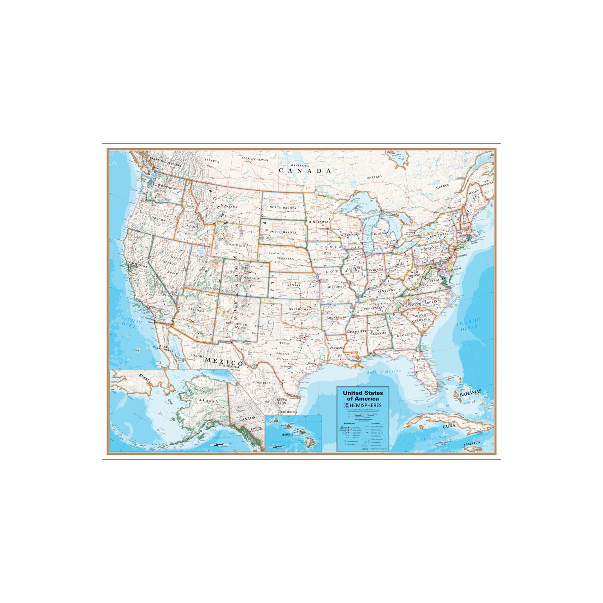 This beautiful Contemporary Series United States map is laminated and measures 38" x 48". Can be used for write on and wipe off! A great learning tool.