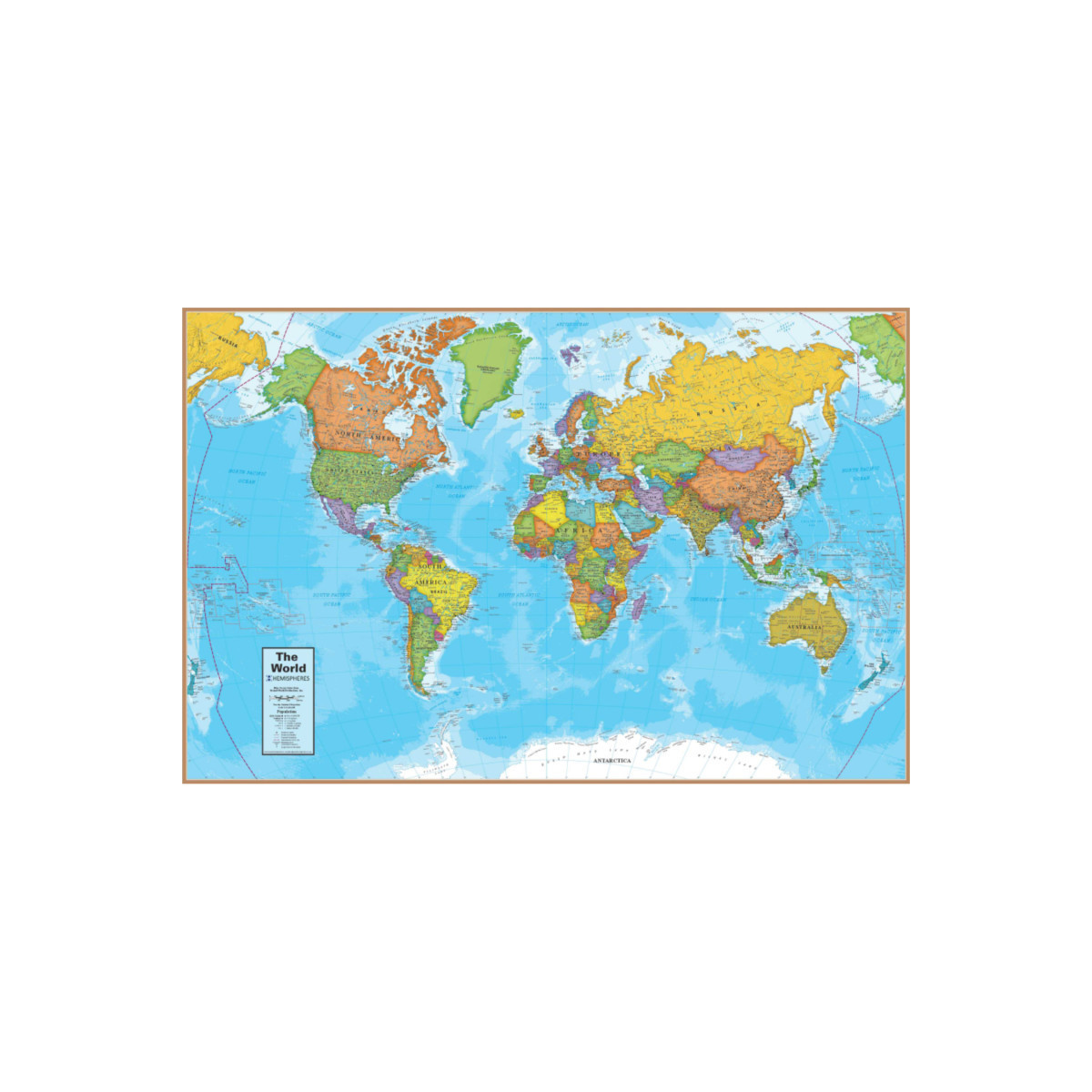 This colorful world map desk mat is handy for reference and décor, fits right under a computer, and also acts as a mouse pad. Desk mat has a durable laminate surface with a soft foam base. Comfortable resting surface for your hands while writing, typing or using the mouse.