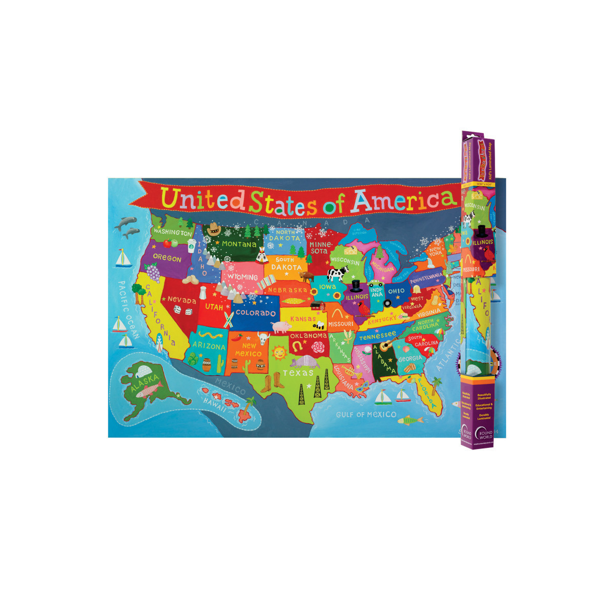 This colorful 24" x 36" Kid's USA Map will brighten up any space as your child enjoys the fun illustrations. It is solidly laminated for long time enjoyment.