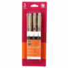 Pigma Micron pens are waterproof and permanent fineliners that are loyally used by designers, scientists, archivists, architects, Manga artists, cartoonists, illustrators and hobbyists. The fine nib makes this pen ideal for creating both technical and artistic drawings. The fineliners have a protective metal sleeve around the extended tip to give extra control and increased resilience when used with drawing aids such as rulers. This permanent, fade resistant, chemically stable, pigment-based ink will not bleed or run if liquids are spilled on or applied to the document after the ink has dried. Perfect for legal situations, Pigma ink is nearly impossible to alter on documents, in log books, or on checks. Architects, archivists, anthropologists, entomologists and laboratories depend on Pigma Micron for record keeping. Pigma Micron is the first disposable technical pen using archival pigmented ink. It does not smear, feather, or bleed through on most paper. Contains sizes 01, 03, 05.