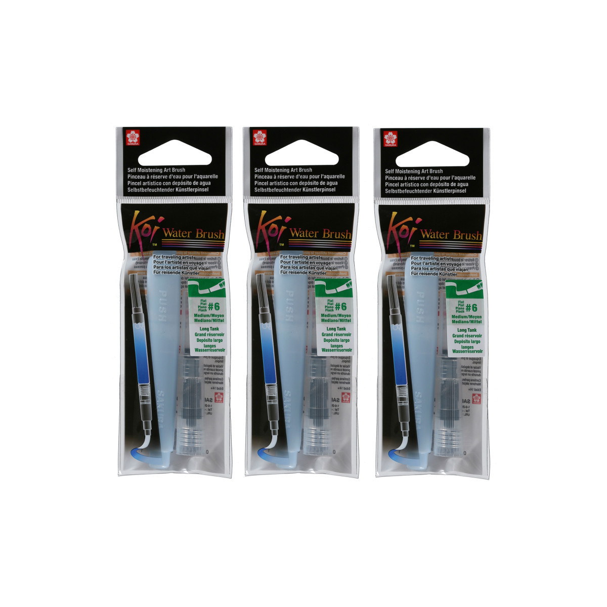 Work on your watercolors anywhere and at any time with the Koi Water Brush! Koi Water Brushes are designed for easy transportation and storage of water when you’re away from home or the studio. The brush separates into two parts: a fine flexible brush tip, and a barrel handle with a plug to carry water. This paint brush has a unique refillable water reservoir, including a stopper to prevent water from leaking when detaching the water brush. The comfortable grip is great for controlled blending, shading, and highlighting. Sold as a pack of 3.