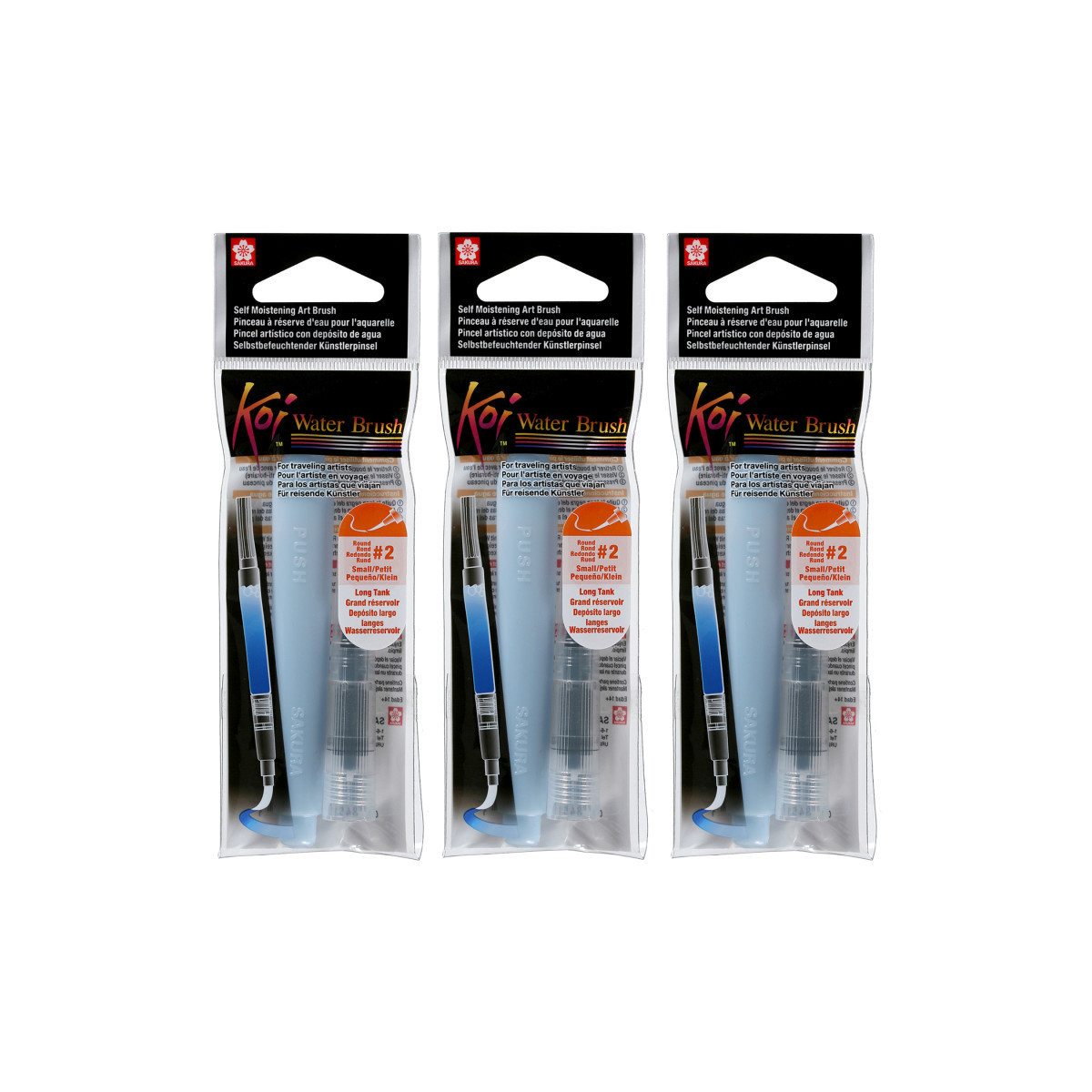 Work on your watercolors anywhere and at any time with the Koi Water Brush! Koi Water Brushes are designed for easy transportation and storage of water when you’re away from home or the studio. The brush separates into two parts: a fine flexible brush tip, and a barrel handle with a plug to carry water. This paint brush has a unique refillable water reservoir, including a stopper to prevent water from leaking when detaching the water brush. The comfortable grip is great for controlled blending, shading, and highlighting. Sold as a pack of 3.
