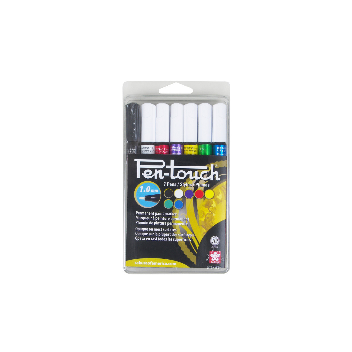 Pen-Touch markers are perfect for marking and illustrating in bold colors. Pen-Touch writes on a wide variety of surfaces including cardstock, plastic, wood, glass, porcelain, paper and metal. The marker is also suitable for various industrial purposes, including manufacturing, quality control, security and theft prevention and construction. The marker features an aluminum barrel and a valve-action mechanism to ensure good flow of the highly pigmented ink. Writes on various surfaces, including steel & iron, sheet metal, glass & plexiglass, wood, ceramics, porcelain and plastics. Ideal for several industrial uses, including marking and identifying parts, pipes & tubing, sheet metal, wiring, construction assembly, manufacturing & fabrication processes. Adheres permanently to most surfaces. Removable from non-porous surfaces with alcohol or lacquer thinner. Package contains: 1 each Yellow, Red, Purple, Green, Blue, White and Black.