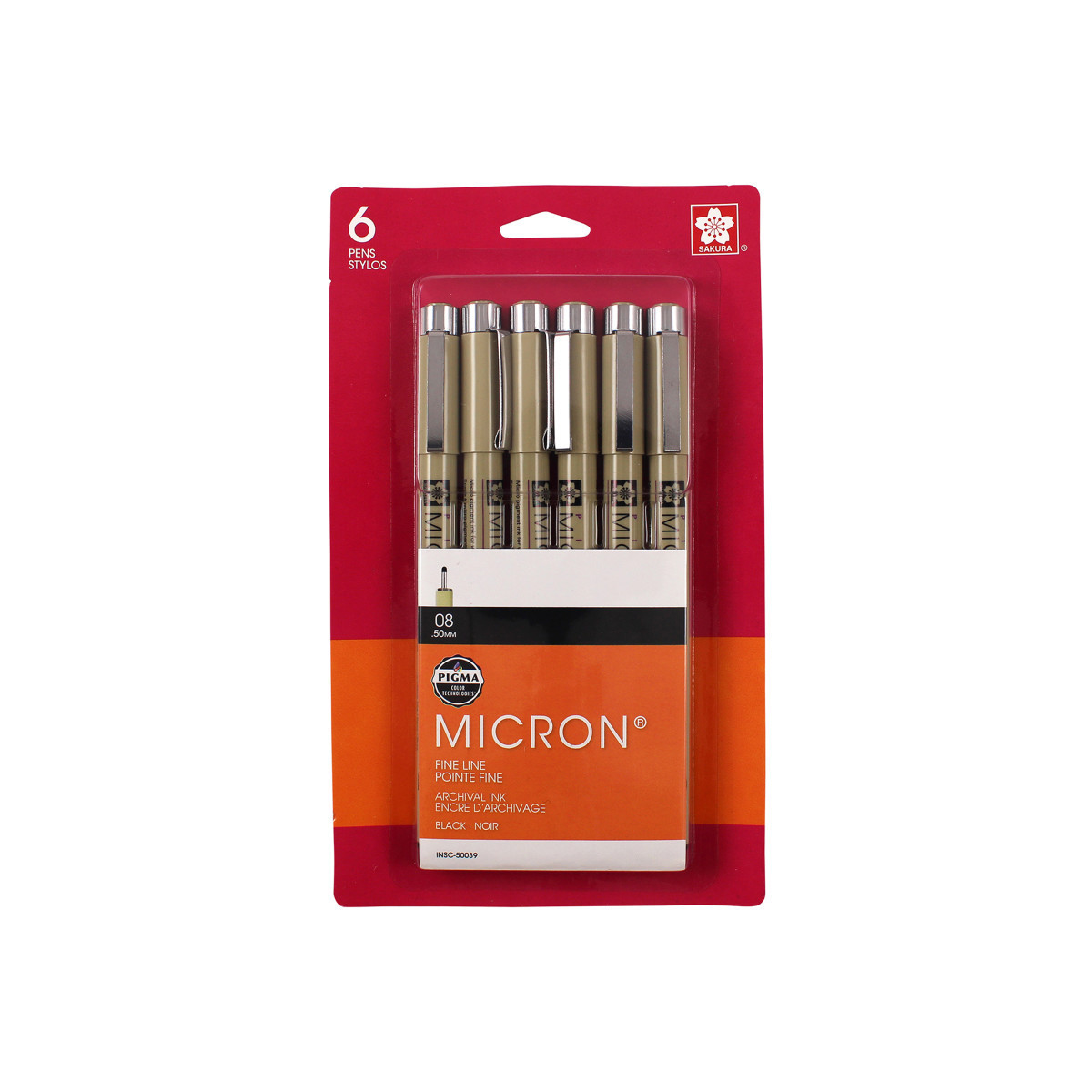Pigma Micron pens are waterproof and permanent fineliners that are loyally used by designers, scientists, archivists, architects, Manga artists, cartoonists, illustrators and hobbyists. The fine nib makes this pen ideal for creating both technical and artistic drawings. The fineliners have a protective metal sleeve around the extended tip to give extra control and increased resilience when used with drawing aids such as rulers. This permanent, fade resistant, chemically stable, pigment-based ink will not bleed or run if liquids are spilled on or applied to the document after the ink has dried. Perfect for legal situations, Pigma ink is nearly impossible to alter on documents, in log books, or on checks. Architects, archivists, anthropologists, entomologists and laboratories depend on Pigma Micron for record keeping. Pigma Micron is the first disposable technical pen using archival pigmented ink. It does not smear, feather, or bleed through on most paper. Contains six size 08 pens.