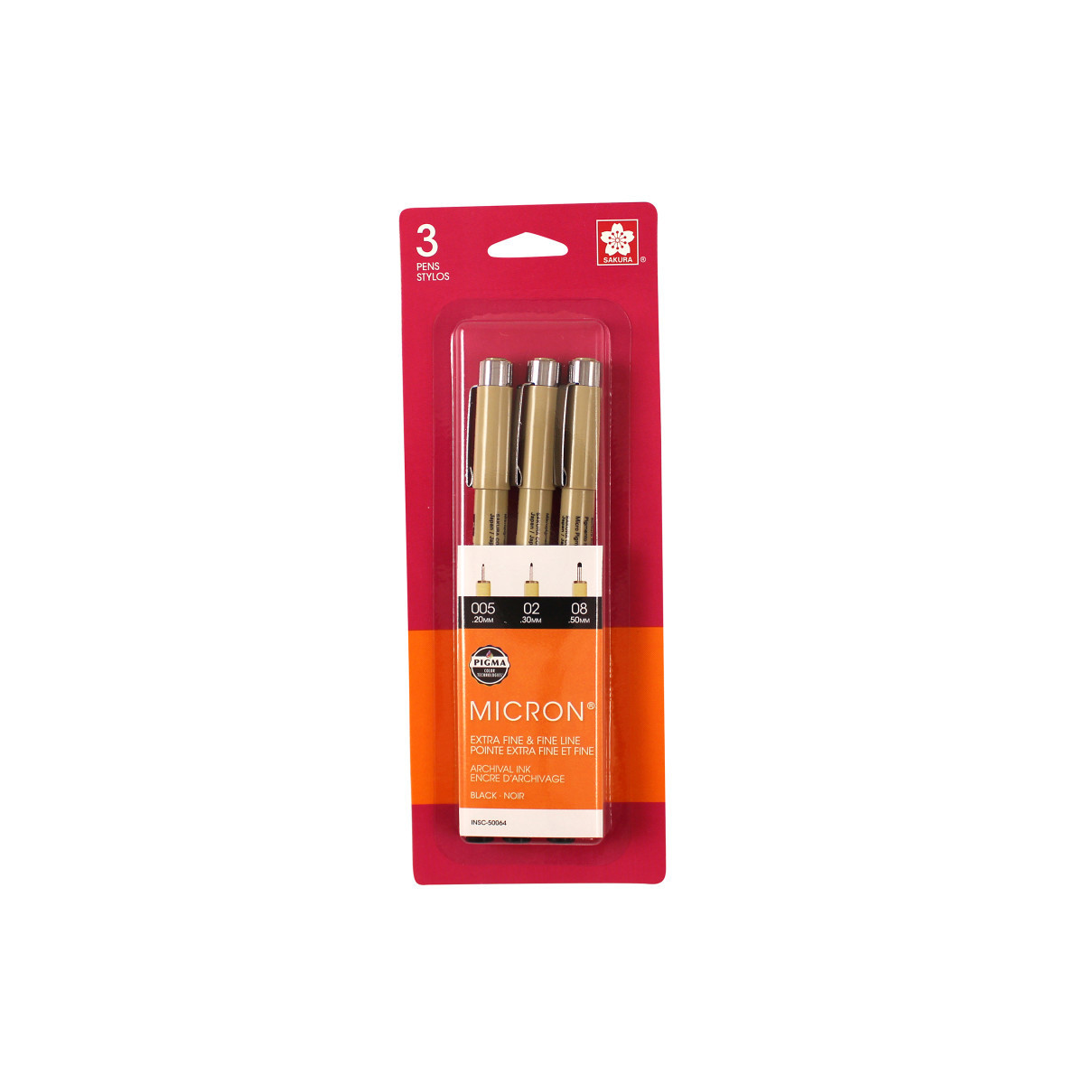 Pigma Micron pens are waterproof and permanent fineliners that are loyally used by designers, scientists, archivists, architects, Manga artists, cartoonists, illustrators and hobbyists. The fine nib makes this pen ideal for creating both technical and artistic drawings. The fineliners have a protective metal sleeve around the extended tip to give extra control and increased resilience when used with drawing aids such as rulers. This permanent, fade resistant, chemically stable, pigment-based ink will not bleed or run if liquids are spilled on or applied to the document after the ink has dried. Perfect for legal situations, Pigma ink is nearly impossible to alter on documents, in log books, or on checks. Architects, archivists, anthropologists, entomologists and laboratories depend on Pigma Micron for record keeping. Pigma Micron is the first disposable technical pen using archival pigmented ink. It does not smear, feather, or bleed through on most paper. Contains sizes 005, 02 and 08.