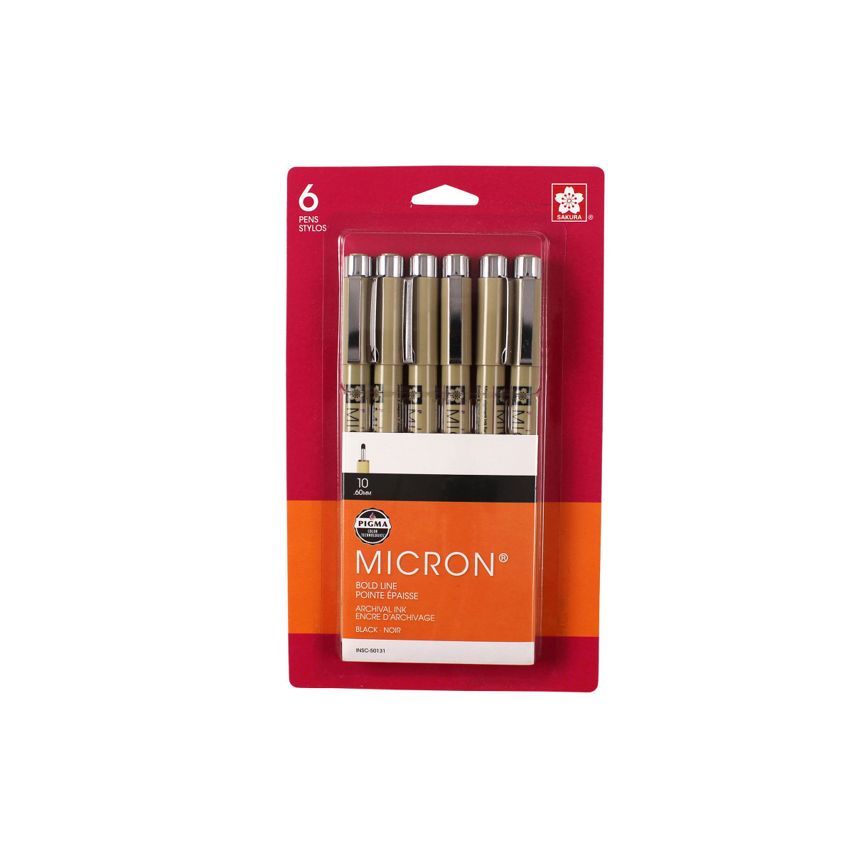 Pigma Micron pens are waterproof and permanent fineliners that are loyally used by designers, scientists, archivists, architects, Manga artists, cartoonists, illustrators and hobbyists. The fine nib makes this pen ideal for creating both technical and artistic drawings. The fineliners have a protective metal sleeve around the extended tip to give extra control and increased resilience when used with drawing aids such as rulers. This permanent, fade resistant, chemically stable, pigment-based ink will not bleed or run if liquids are spilled on or applied to the document after the ink has dried. Perfect for legal situations, Pigma ink is nearly impossible to alter on documents, in log books, or on checks. Architects, archivists, anthropologists, entomologists and laboratories depend on Pigma Micron for record keeping. Pigma Micron is the first disposable technical pen using archival pigmented ink. It does not smear, feather, or bleed through on most paper. Contains six size 10 pens.