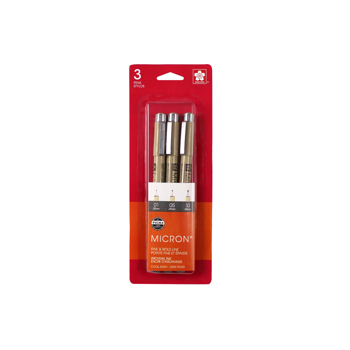 Sakura Pigma Micron Pens, Cool Gray, Assorted Sizes, 3-Piece Set, Blister Card