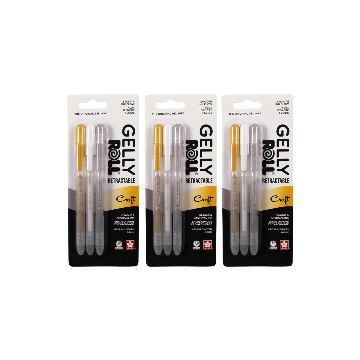From the makers of The Original Gel Ink®, our super smooth Gelly Roll, now in convenient retractable. Create something special with unlimited possibilities for creative fun, innovative colors, and ink styles that go from work to play with ease. Super smooth Classic ink is perfect for notes, lists, drawing, and beyond. Our shiny gel ink writes on matte or glossy papers, and comes in an 08 medium tip size for smooth gel ink flow. Our Archival Ink stays put! Gelly Roll Retractable is waterproof, chemical & fade resistant, bleed-free, and ph-neutral. Each set includes 3 pens. Sold as 3 sets for a total of 9 pens.