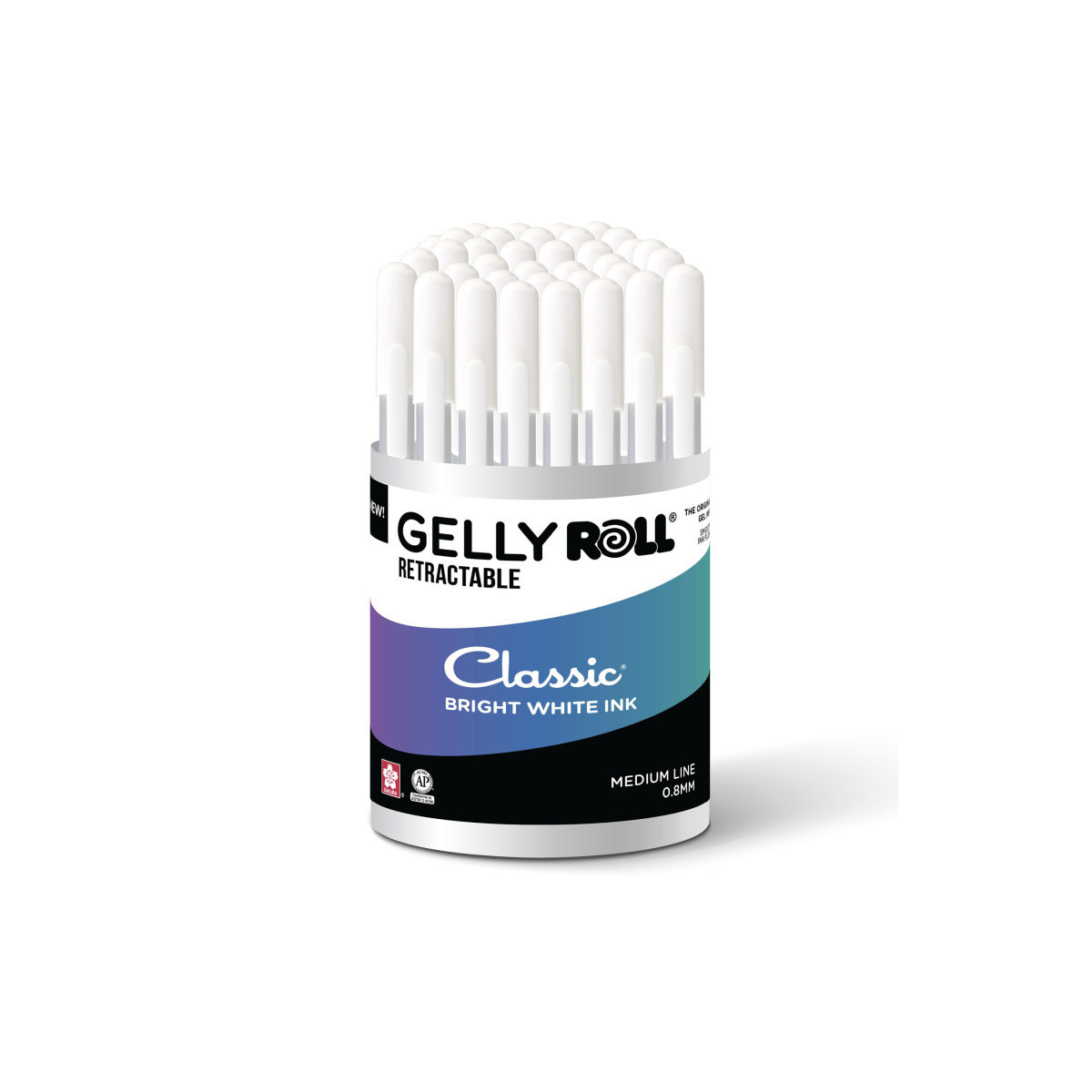 Sakura Retractable Gelly Roll Pens: The original gel ink, reimagined in retractable, so you can infuse fun, sparkle, and shine into work, art, and play; great as bullet journal pens. The opaque white ink stands out on dark and colored papers and makes highlights pop in illustrations and comics. Use it for hand lettering accents, party crafts, layered on top of colors for mixed media and bright highlights in tonal drawings.