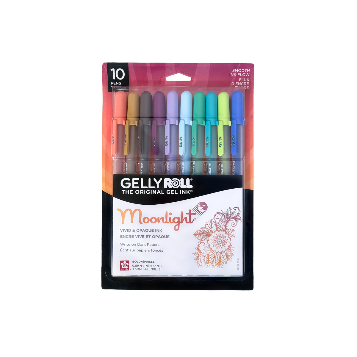 Note: Moonlight ink comes in two types: archival and fluorescent. Archival Gelly Roll Moonlight colors contain pigment-based ink – chemically stable, waterproof, and fade resistant. Fluorescent Gelly Roll Moonlight colors can fade if exposed to direct sunlight and glow under a black light.