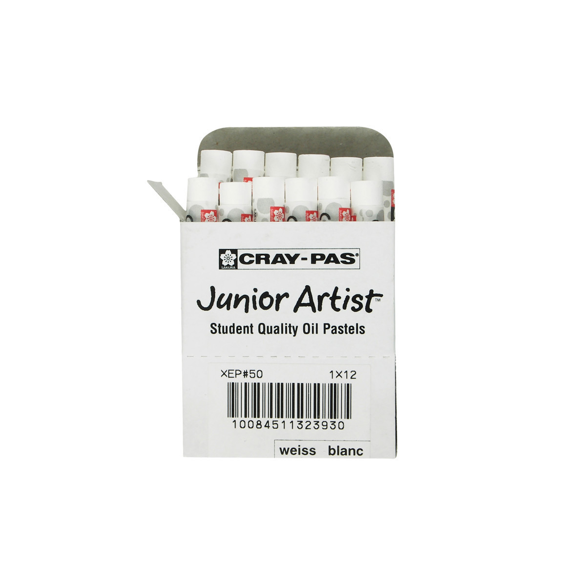 Invented in 1921, Sakura is the original inventor of oil pastels. Cray-Pas Junior Artist provides beautiful and blendable color for young hands. The best art curriculums nationwide use Cray-Pas to teach and practice art introductory techniques. Cray-Pas oil pastels can create oil paint effects, will not peel, crack or flake, are easily blendable, and are safe for children. The round shape of Cray-Pas Junior Artist is easy to hold, and are great for drawing, lettering, scratch art, and long lasting sidewalk art. Cray-Pas are excellent on paper, cardboard, and canvas. Pastels measure 8mm x 60.8mm. Contains 12 white oil pastels.