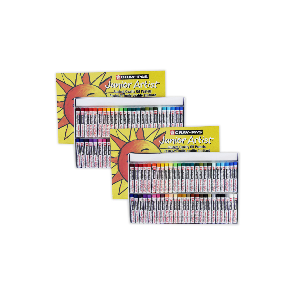 Invented in 1921, Sakura is the original inventor of oil pastels. Cray-Pas Junior Artist provides beautiful and blendable color for young hands. The best art curriculums nationwide use Cray-Pas to teach and practice art introductory techniques. Cray-Pas oil pastels can create oil paint effects, will not peel, crack or flake, are easily blendable, and are safe for children. The round shape of Cray-Pas Junior Artist is easy to hold, and are great for drawing, lettering, scratch art, and long lasting sidewalk art. Cray-Pas are excellent on paper, cardboard, and canvas. Pastels measure 8mm x 60.8mm. Each pack includes 50 oil pastels in 48 assorted colors. Sold as 2 sets for a total of 100 oil pastels.