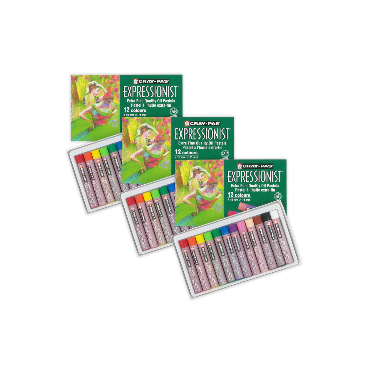 Cray-Pas Expressionist of Sakura is superior oil pastel chalk with intense colors. This set contains the basic shades of Cray-Pas rich color palette, ideal for making portraits, landscapes, abstract works of art and other creations. The oil pastel chalk is soft and easy to apply on various surfaces such as paper, canvas, wood, plastic and stone. This way you can even imitate the effect of oil colors! The oil pastel chalk is fine-art quality and light real, so that your sketches and drawings remain beautiful for a long time. Cray-PasIn 1925, Sakura discovered and patented a revolutionary color product called Cray-Pas, a soft oil pastel chalk with intense colors that is easy to use. It was a global breakthrough in color, and after almost a century, Cray-Pas is still the most important oil pastel for children and artists around the world. The quality of Cray-Pas is undeniable, due to its balanced color range, coverage, unique pigments and ease of application. Each set includes 12 oil pastels. Sold as 3 sets for a total of 36 oil pastels.