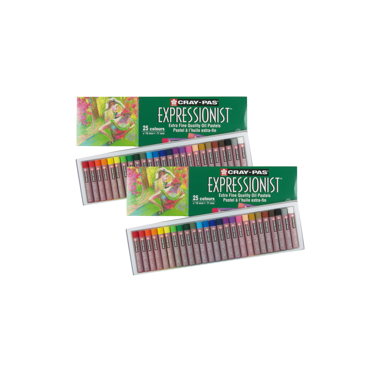 Cray-Pas Expressionist oil pastel chalk from Sakura is ideal for making portraits, landscapes, abstract works of art and other creations. The oil pastel chalk is soft and easy to apply on various surfaces such as paper, canvas, wood, plastic and stone. This way you can even imitate the effect of oil colors! The oil pastel chalk is of fine art quality and excellent lightfast, allowing your artworks to retain their original colors for decades. In 1925, Sakura discovered and patented a revolutionary color product called Cray-Pas, a soft oil pastel chalk with intense colors that is easy to use. It was a worldwide breakthrough in color and after almost a century, Cray-Pas is still the most important oil pastel for children and artists around the world. The quality of Cray-Pas is undeniable, due to its balanced color range, coverage, unique pigments and easy application. Each set includes 25 oil pastels. Sold as 2 sets for a total of 50 oil pastels.