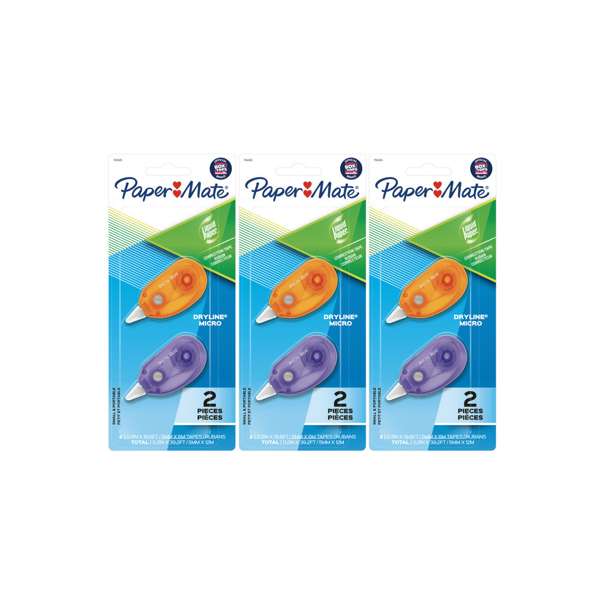 Quickly cover your mistakes when you're on-the-go with Liquid Paper DryLine Micro Correction Tape. This correction tape dispenser features a compact design that fits easily into pencil cases, book bags, and many other forms of storage. The tape goes down absolutely smooth and corrects instantly with no mess, so you never need to wait for it to dry before copying, rewriting, or retyping. You will also enjoy an ergonomic shape that fits comfortably in your hand providing a secure hold for added control. And here's a tip for the best corrections: place your paper on a firm, flat surface and slowly roll the applicator over the error using firm, even pressure. Do-overs done right, it's like mistakes were never even there. Each pack includes 2 correction tapes. Sold as 3 packs for a total of 6 correction tapes.