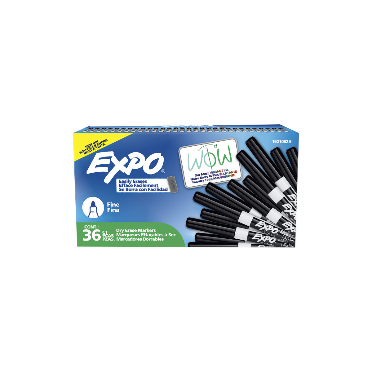 Track, schedule, collaborate, and present with vibrant Expo Fine Dry Erase Markers. They feature vivid ink and exciting colors that stand out—perfect for planning, presentations, lessons, calendar boards, and personal organization. With an EXPO eraser, these EXPO markers erase cleanly and easily from whiteboards and most nonporous surfaces. The low odor ink is perfect for classrooms, offices, and homes, while the fine tip is great for accurate, detailed lines. Pack of 36.
