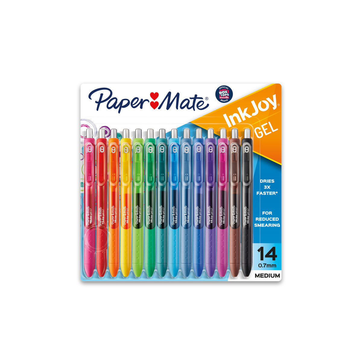 Spread joy (not smears) with Paper Mate InkJoy Gel Pens. With vivid gel ink that dries 3X faster* for reduced smearing, it's like a party on the page where smudges aren't invited. Brilliant color ensures your writing will be bright and filled with fun. Fully wrapped with a comfort grip, Paper Mate InkJoy pens have a smooth style that keeps the joy flowing as fast as your thoughts. Pack of 14.
