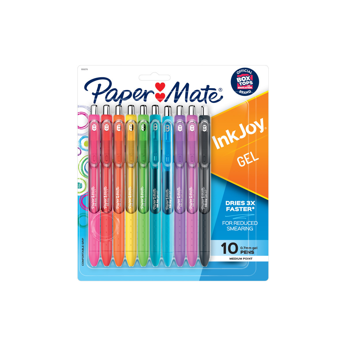 Spread joy (not smears) with Paper Mate InkJoy Gel Pens. With vivid gel ink that dries 3X faster* for reduced smearing, it's like a party on the page where smudges aren't invited. Brilliant color ensures your writing will be bright and filled with fun. Fully wrapped with a comfort grip, Paper Mate InkJoy pens have a smooth style that keeps the joy flowing as fast as your thoughts. Pack of 10.