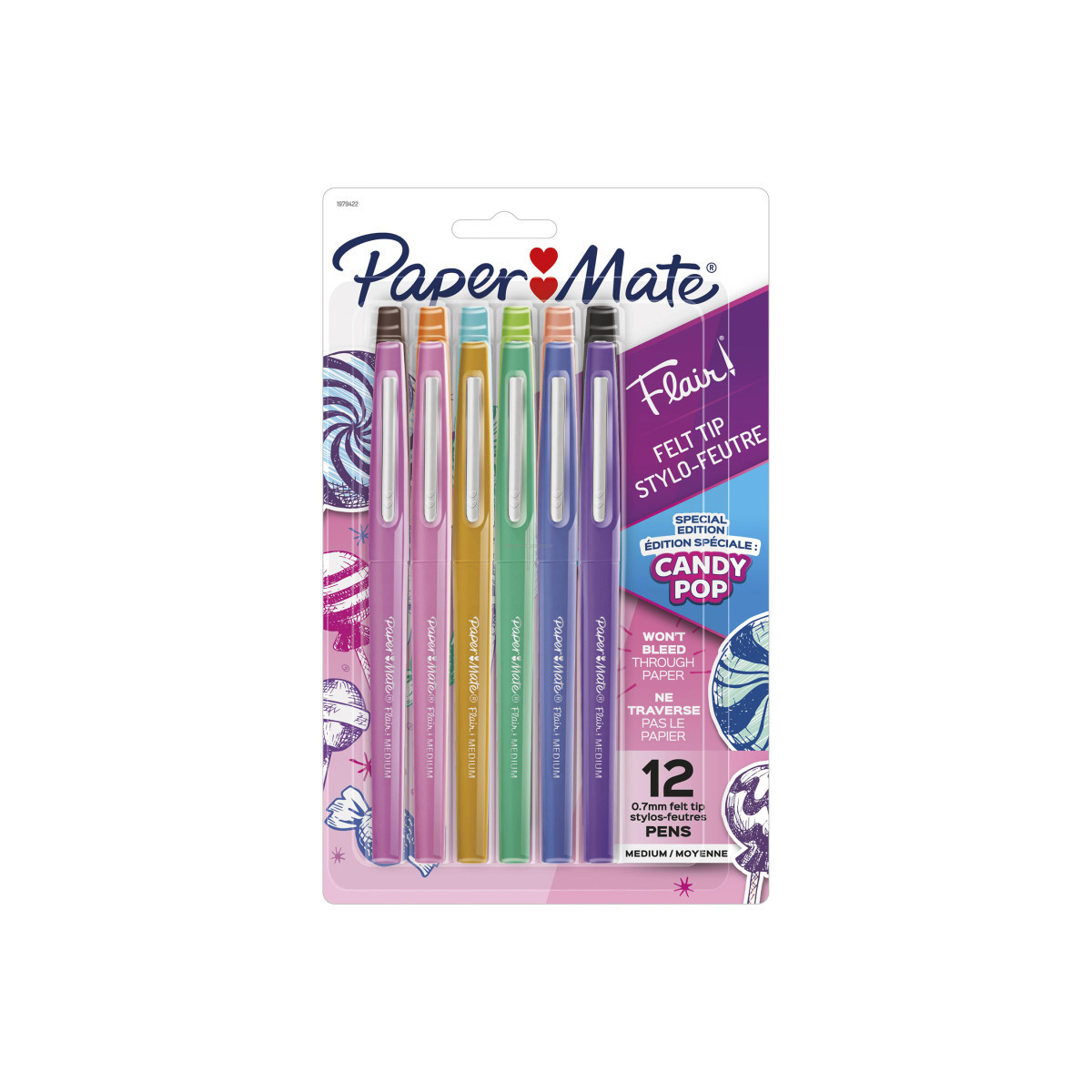 Boost your writing fun-factor with Paper Mate Flair Felt Tip Pens! With a rainbow of bright colors and smear-resistant ink that won't bleed through the page, these colored pens make writing a blast. The medium point (0.7mm) writes in bold, colorful lines so your self-expression makes a major statement. The best part of all? Everything you can create—whether you're taking notes, drawing, doodling, or doing anything else that inspires you. With Flair Pens, there's no limit to your fun. Pack of 12.