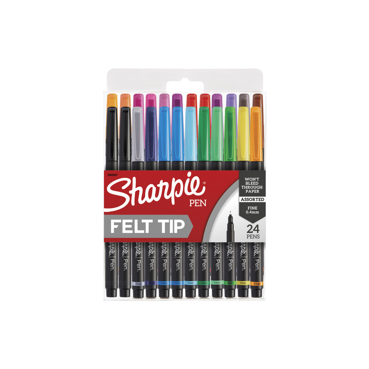 Dare to unleash your artsy side with effortlessly refined Sharpie Art Pens. When your mind is bursting with ideas that scream to be sketched, Sharpie fine point pens answer the call. Loaded with quick-drying ink that won't bleed through paper and featuring a boldly bright color palette, Sharpie marker pens help you conquer the creative process. And, whether you're a seasoned pro or aspiring amateur, the slim grip and fine tip help you add nuance and depth to your creations. Pack of 24.