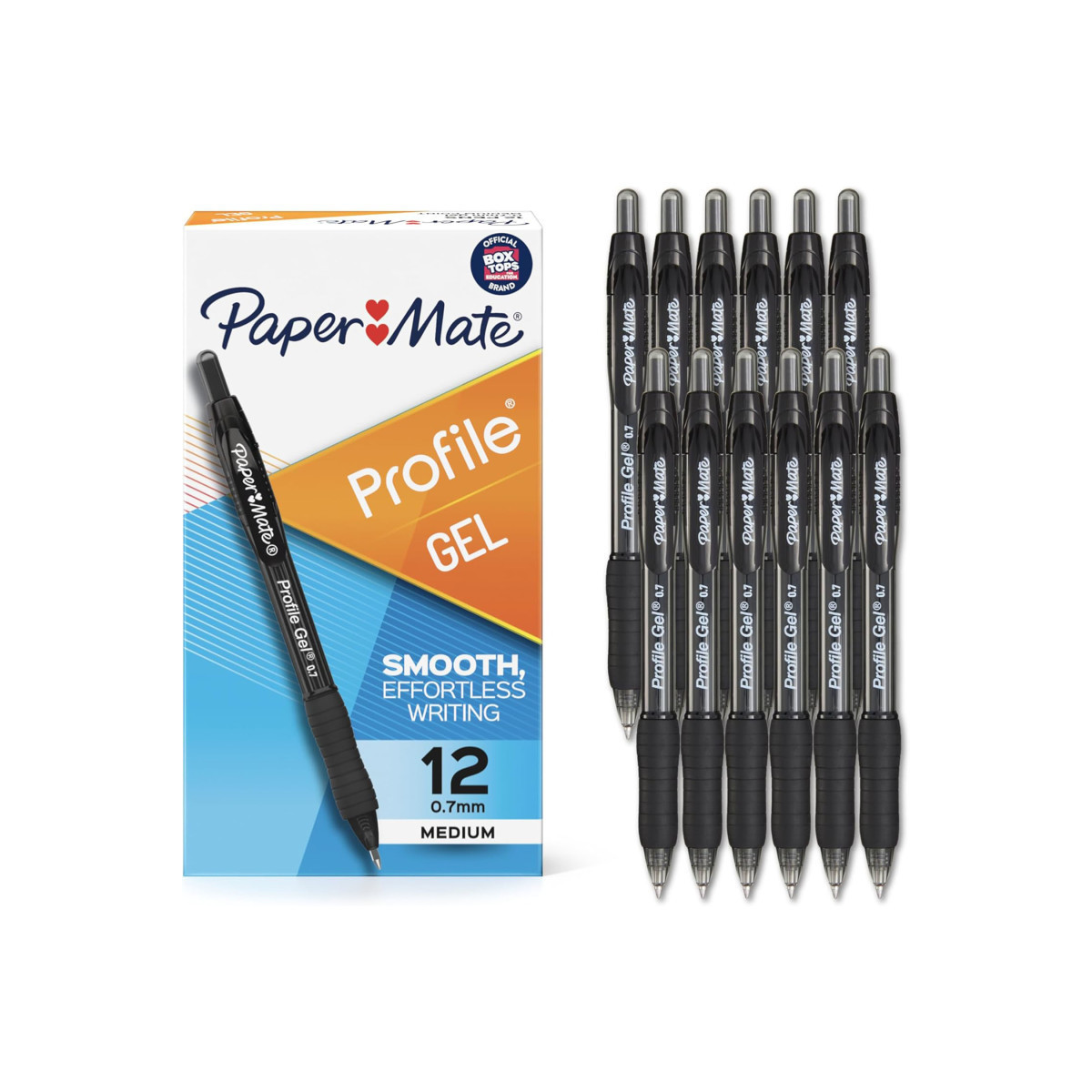 For ultra-smooth, vivid writing, turn to Paper Mate Profile Gel pens. These retractable pens feature vibrant ink that stands out on the page. A soft grip lets you write comfortably, no matter the writing task. Each gel pen has an easy-glide 0.7mm tip that lays down beautiful yet fluid lines. Each box includes 12 black pens.