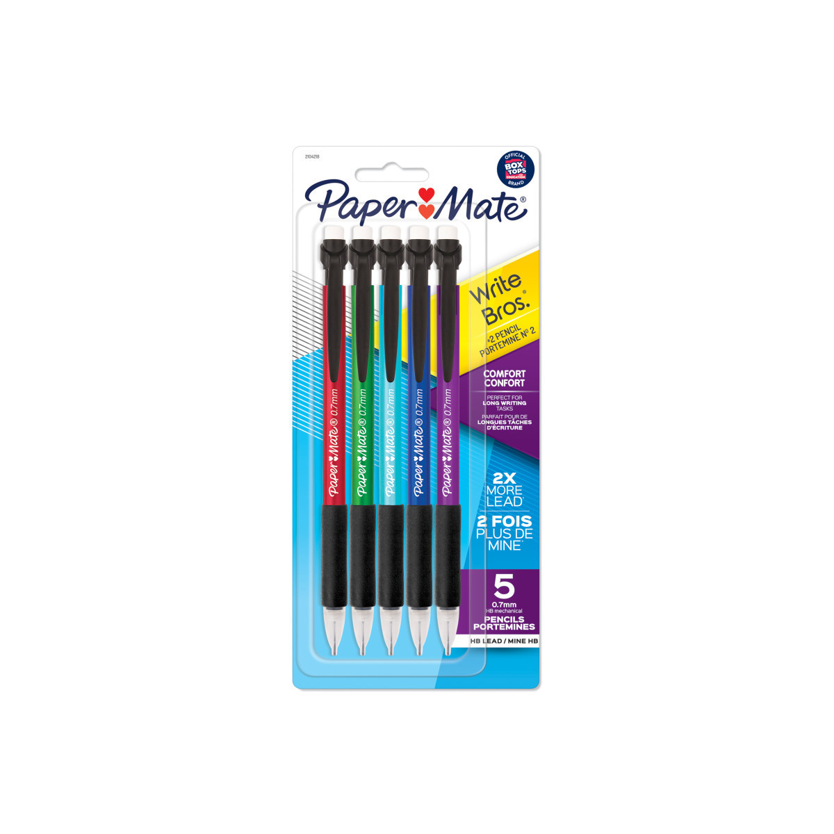 With 40% more lead*, Paper Mate Write Bros. Comfort Mechanical Pencils help you spend more time writing and less time at the pencil sharpener. The comfort grip is perfect for long writing tasks. Meanwhile, a smudge-free eraser keeps your writing clean. Finally, the #2 pencil lead (0.7mm) makes these mechanical pencils ideal for standardized testing. They're great for fast-paced home, office, and school use! Each pack includes 5 pencils.