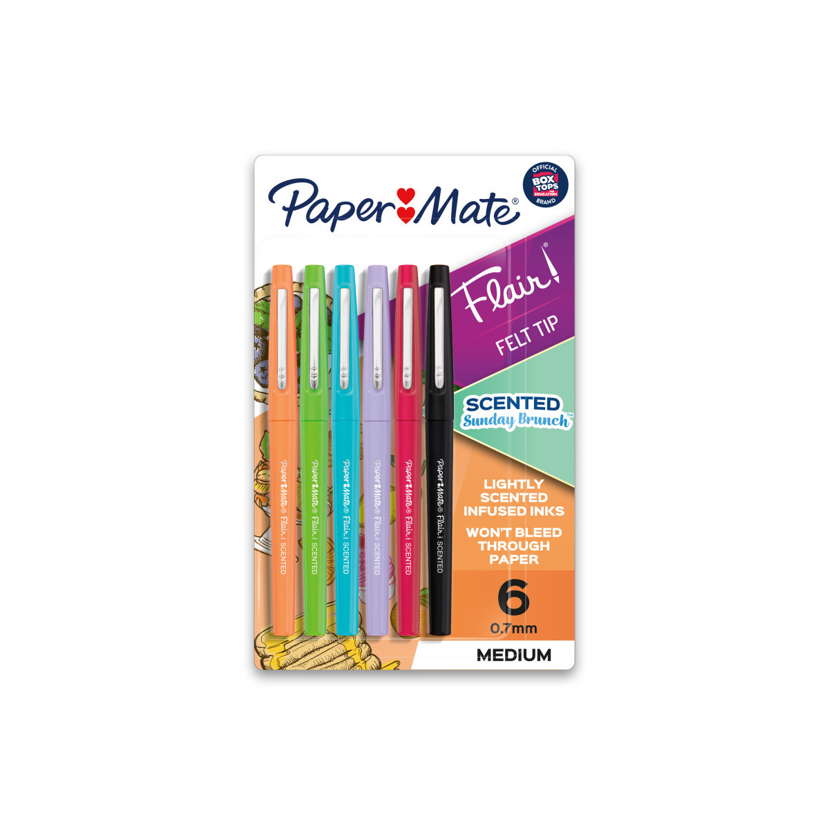 Delight your senses with the smell of sweet Sugared Grapefruit and rich Hazelnut Latte with Paper Mate Flair Scented Sunday Brunch-Themed Pens. The same vivid Flair colors you know and love with a lightly added scent! With 6 scents and colors inspired by Sunday Brunch, these Flair pens will transport you to your favorite meal as you write, color, and doodle. Flair pens won't bleed through paper and feature Point Guard technology and smear-resistant ink so your work stays neat. Order up the fun of Sunday Brunch for your bullet journaling, adult coloring, note taking, and more, with Paper Mate Flair!