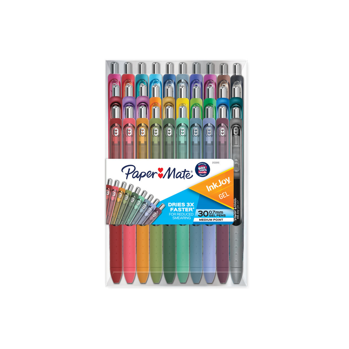 Spread joy (not smears) with Paper Mate InkJoy Gel Pens. With vivid gel ink that dries 3X faster* for reduced smearing, it's like a party on the page where smudges aren't invited. Brilliant color ensures your writing will be bright and filled with fun. Fully wrapped with a comfort grip, Paper Mate InkJoy pens have a smooth style that keeps the joy flowing as fast as your thoughts. And with 30 vibrant colors, you'll never be at a loss for words.