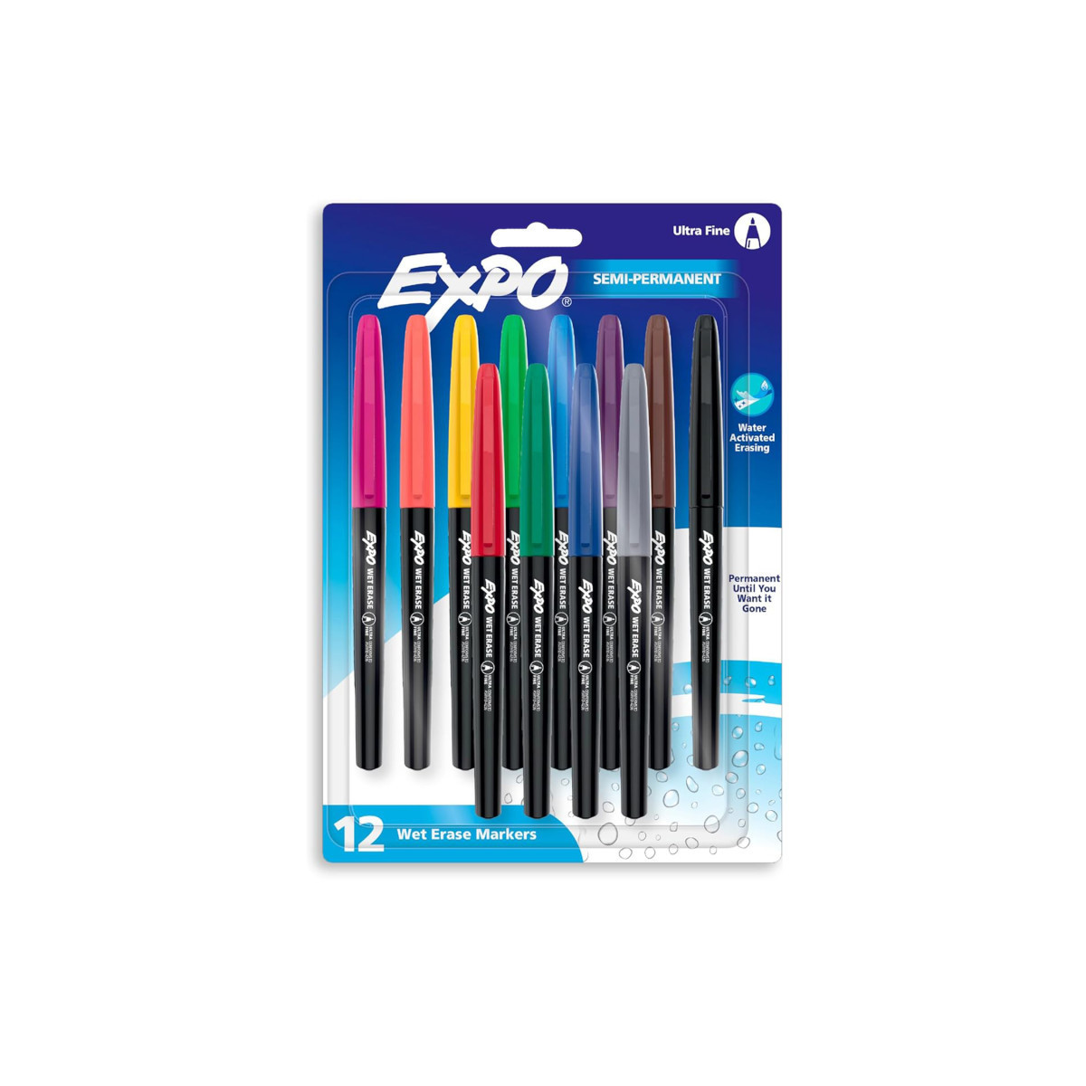 Label, plan, and organize with ease with EXPO Wet Erase Markers. Depend on EXPO wet erase markers for writing or drawing on whiteboards, hard plastic, laminated sheets, and other nonporous surfaces. These EXPO markers feature ink that easily wipes off with a damp cloth. Available in a variety of vibrant colors, the fine-tip markers leave fine detailed lines even in small spaces.