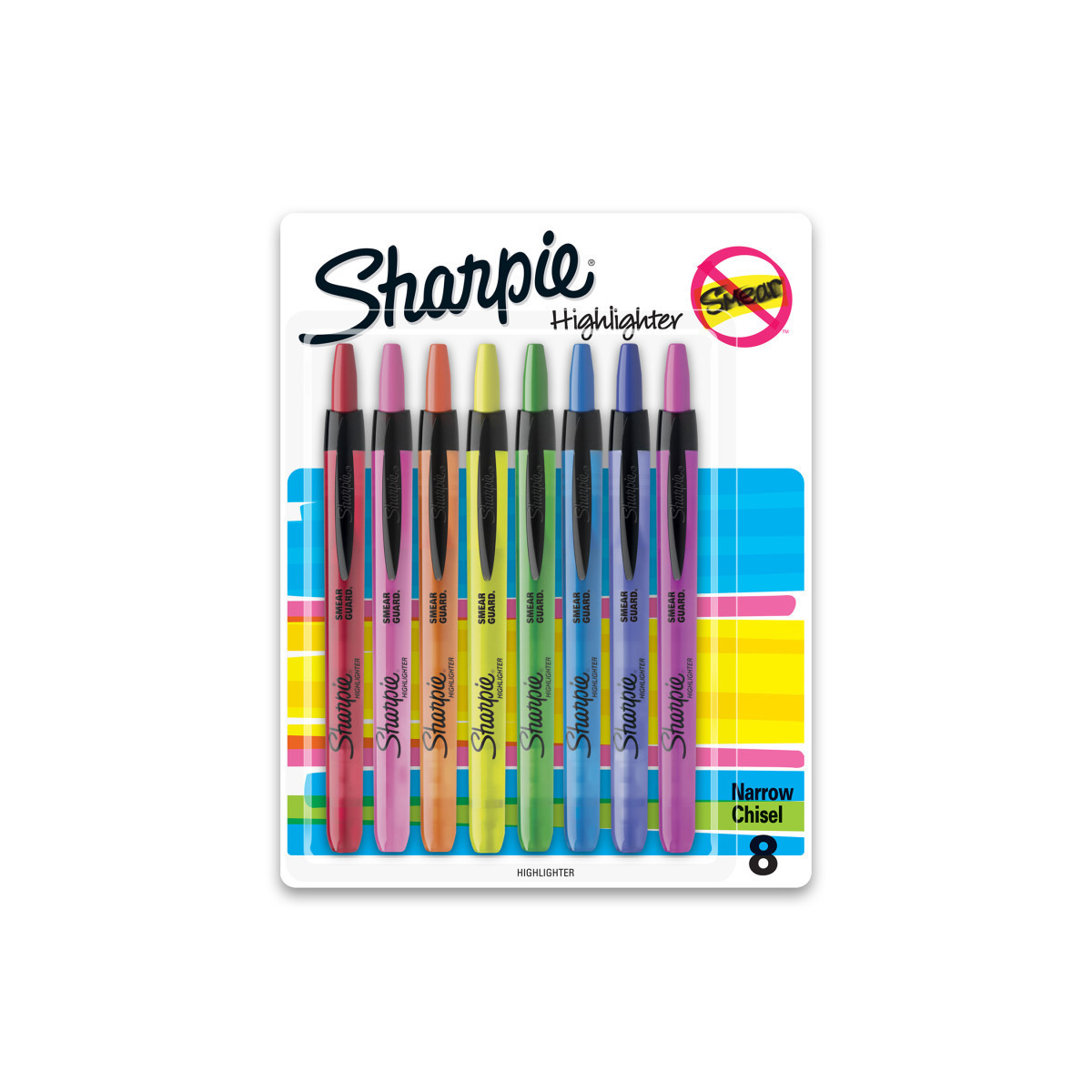 No highlighter shines as bright. Gotta remember this, gotta do that, gotta go there, gotta see everything. Perfect for when info is high priority and precision is a must, Sharpie Retractable Highlighters make everything highly visible. With brilliant colors in transparent, quick-drying ink and an easy gliding narrow chisel tip that highlights and underlines both wide and narrow lines of text, Sharpie highlighters make your most important thoughts and notes jump off the page in an array of easy-to-read shades. It's no wonder why Sharpie is the gotta have highlighter for travel itineraries, camping checklists, escape plans, and the rest of life's major high points. Pack of 8.